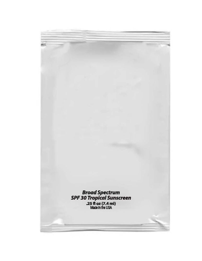 - .25 fl oz (7.4 ml) Large Sunscreen Packet with our Tropical SPF 30 Broad Spectrum Sunscreen